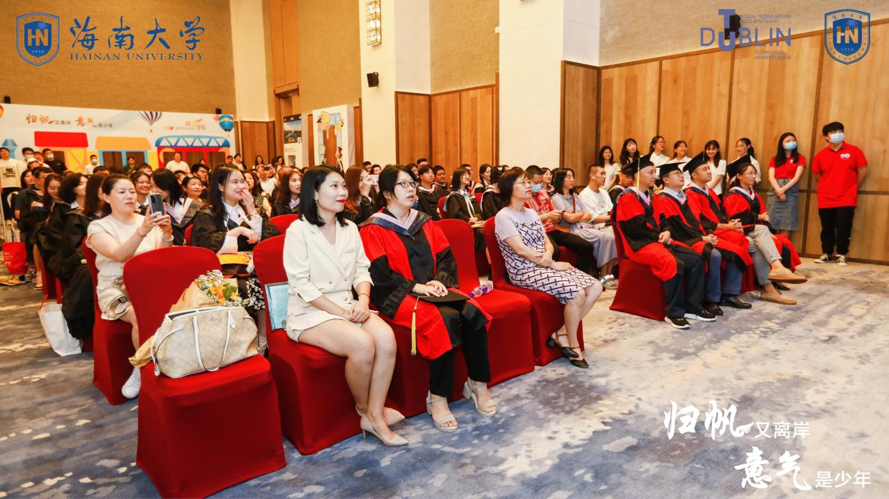 6月19日下午,旅游学院中爱国际合作办学项目(下称“项目”)在海口市索菲特大酒店举行2021年毕业典礼,海南大学国际合作交流处处长杨志昕、旅游学院院长郭强、党委书记韩力光、副院长何彪、毕业班班主任以及部分项目教师出席典礼,此外,还有毕业生家长以及项目其他年级学生到场共同为2021届毕业生送上祝福。本次典礼以行业实习课程为契机,由会展经济与管理系专任教师林子昱指导项目2018级学生精心策划并执行。典礼由何彪副院长主持。