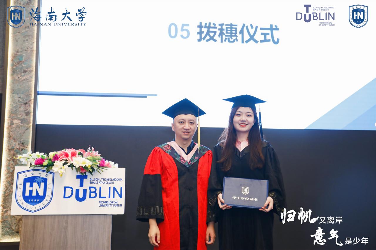 典礼结束最后,校党委副书记、校长、中国科学院院士骆清铭,校党委常委、副校长叶光亮,百忙中应邀前来参加毕业合影,为毕业生们送上毕业祝福。至此,海南大学旅游学院中爱国际合作办学项目2021年毕业典礼圆满礼成。