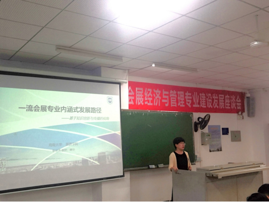 耿松涛教授则在发言中回顾了自身在旅游学院会展系七年的教学经历,讲述了一流会展专业内涵和发展路径,通过与中山大学、上海师范大学、上海大学等高校的会展专业比较总结了一流本科专业建设的经验,同时总结了会展专业的发展历程和面临的问题。最后耿松涛教授提出了要设计一流的培养模式。