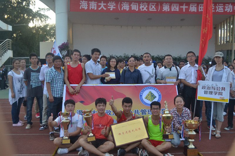 一分耕耘,一分收获。政管学院代表队在本届运动会上,之所以能够取得这样好的参赛成绩,完全得益于学院党政领导的高度重视和悉心指导,参赛师生的勤奋拼搏和精诚协作,学生干部的积极服务和全力保障,以及广大同学的倾力支持与激情鼓劲等。在我院参赛的59名运动员中,有教职工25名、学生34名。例如,在师生男女混合4*100米接力中,我院运动员团结一心,成功夺得亚军。特别是我院符以虎同学在男子学生组标枪项目中,还以61.92米的优异成绩打破海南大学尘封五年的记录;同时,他也是我校本届运动会中唯一打破纪录的参赛运动员,并成功夺得本届运动会的双项桂冠。