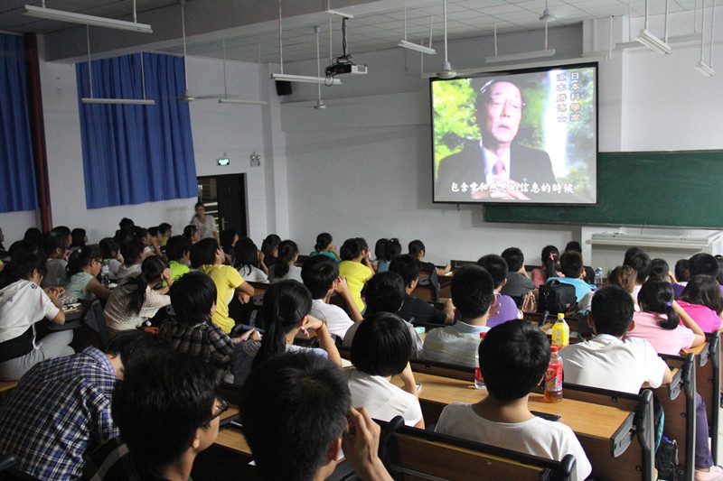 章教授首先通过播放一个“水知道答案”的视频短片,向全体新生剖析了“水可以读懂人”的现象;因而引导要大家心怀感恩、心存感谢、心中有爱,以共同营造更加美好的世界。通过深情朗诵“我爱你们,我的学生”的话语,她在现场更是把新生们带入了一个充满爱的海洋。