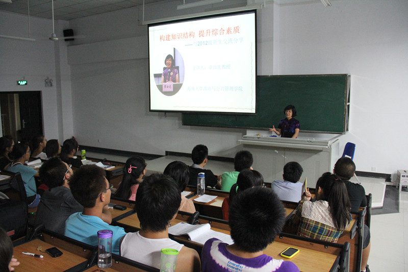 为了让大一新生能够对自己、对大学、对社会有一个客观而又清晰的认识,了解自己内心真正的需求,以便在做好学习生活规划的基础上,正确处理好个人的情感问题,争取成为一个有思想、有价值、有潜力、有前途、且能享受快乐幸福的人,海南大学政治与公共管理学院于2012年10月25日晚,诚邀公共关系学系章汝先教授在第五号教学楼举办了一场以“情感教育”为主题的职业生涯规划讲座。院学工办辅导员李佳宾老师及200余名新生一同聆听了本次讲座。