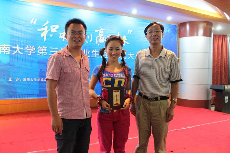 海南大学毕业生就业指导中心主办、海南大学职业新视野协会和海南大学职业发展协会联合承办的“积极规划 赢取未来”海南大学第三届职业生涯规划大赛决赛,于2012年6月5日下午在旅游学院多功能报告厅隆重举行,来自我院2011级公共关系学专业的政管学院选手——杨璐同学喜获二等奖。我院党委书记、全球职业规划师、高级职业指导师王默忠副教授应邀担任颁奖嘉宾,并为一等奖获得者颁奖。