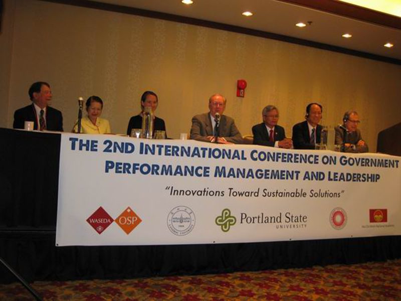 我院院长安应民教授应美国波特兰州立大学马克•汉菲尔德政府学院院长罗纳德•塔门教授邀请,于2011年10月1日至3日参加了在美国波特兰州立大学举行的“第二届政府绩效管理与绩效领导国际学术会议”,并在大会上做了题为“基于政府生态系统的地方政府关键绩效领域及其考核体系设计思路”的发言,受到与会专家学者的关注。这次会议是由波特兰州立大学马克•汉菲尔德政府学院、中国兰州大学管理学院、日本早稻田大学公共管理和公共服务学院、越南胡志明政治与公共管理学院、美国罗格斯大学公共事务与行政管理学院共同主办,波特兰州立大学马克•汉菲尔德政府学院承办的,会议的主题是“创新实现可持续解决方案”,来自于美国、中国、日本、英国、新西兰、加拿大、越南和中国台湾、香港地区的100多名学者参加了会议。