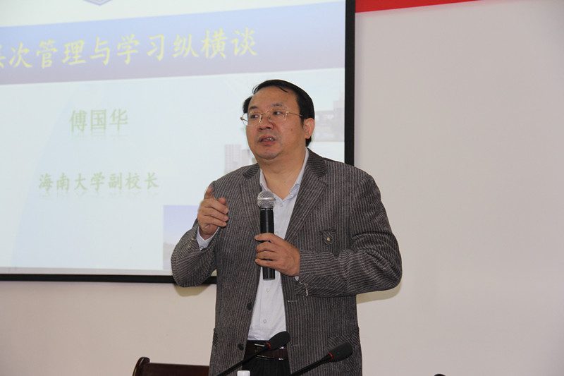 12月8日上午9点,海南大学副校长、博士生导师傅国华教授在社科楼A111多功能报告厅,为我校120余名MPA研究生讲授了一场题为《分层次管理与学习纵横谈》的学术报告;本场报告会由政管学院副院长宋增伟教授主持。