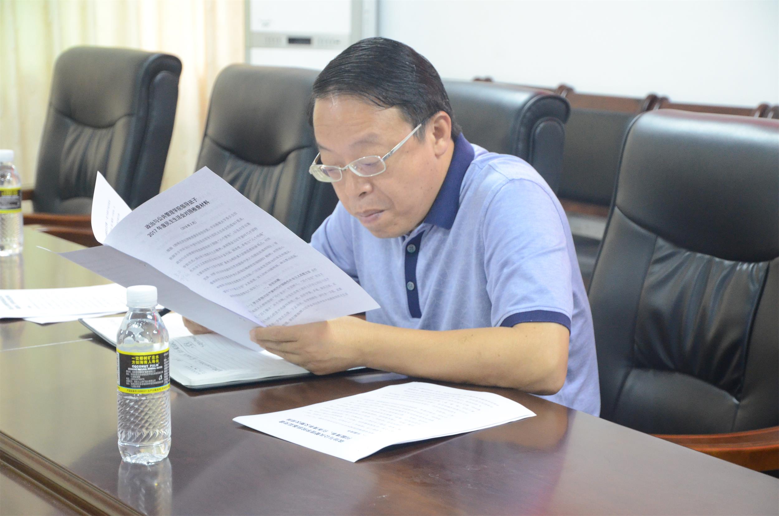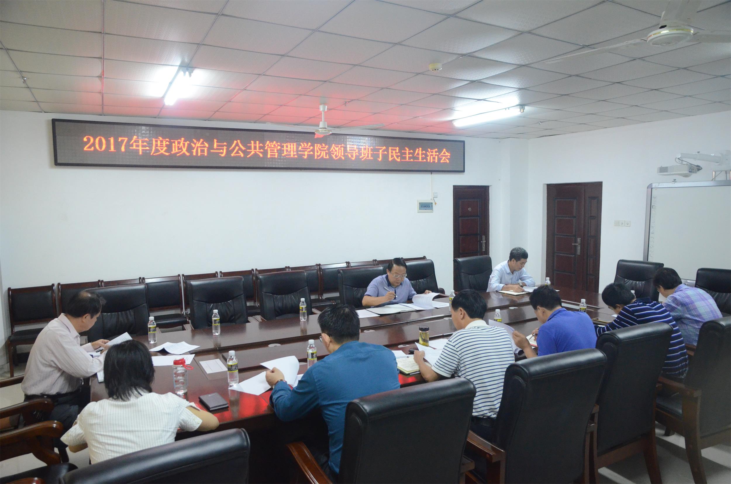 3月27日上午,政治与公共管理学院在A213会议室召开2017年度党员领导干部民主生活会。副校长王崇敏、纪委办副主任黎坚到会指导,学院党委班子成员张治库、江红义、邢红斌、李宜钊、周伟参加会议。会议由院党委书记王默忠主持。