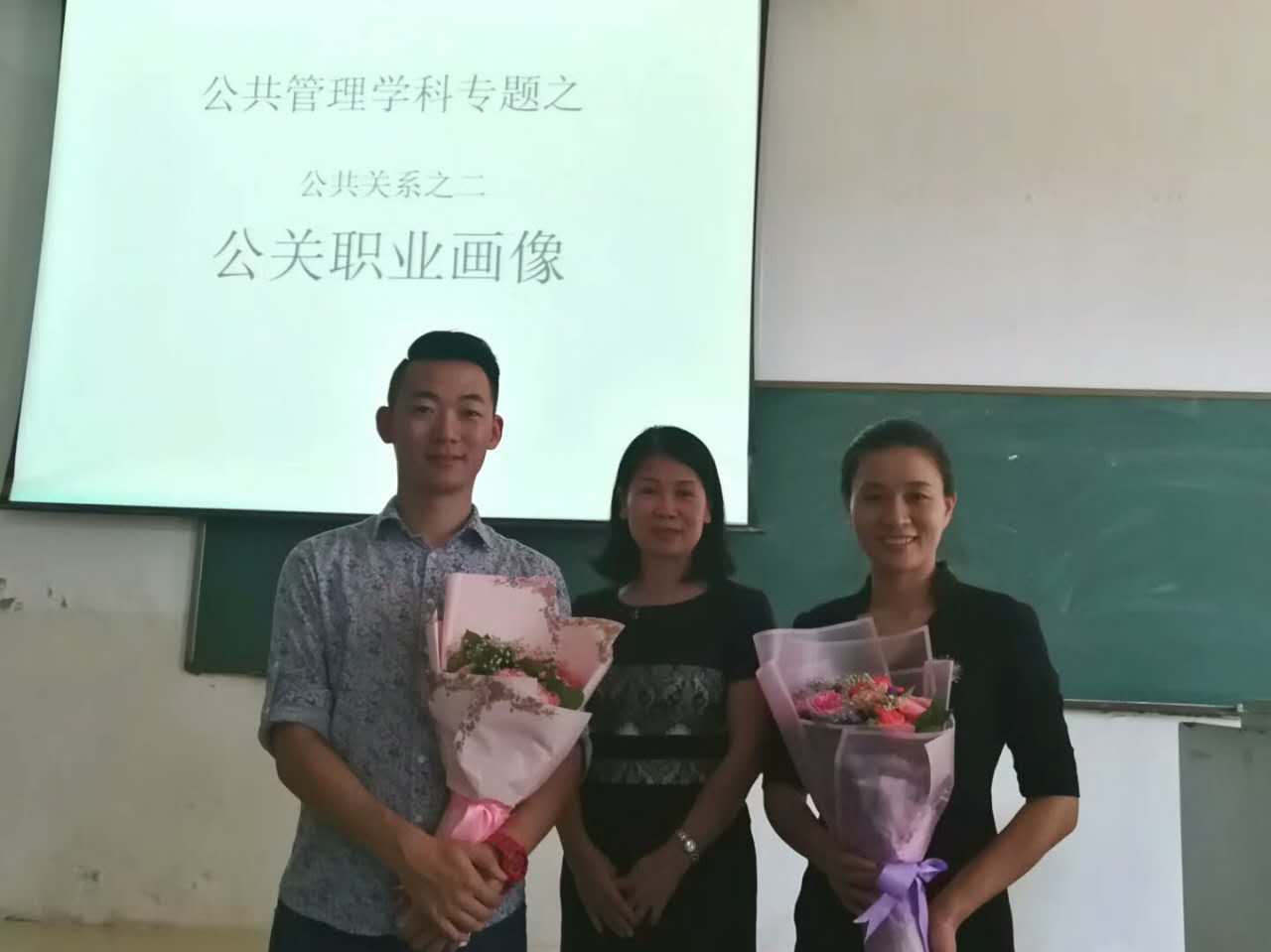 今天的是“公关职业画像”。陈老师邀请了两位已经毕业的公共关系学专业学生来与16级的同学一起分享从业经验和体会,希望通过分享,帮助2016级同学了解公共关系行业,使同学对公共关系职业有更感性的认识。本次邀请到的嘉宾有两位,分别是我校公共关系学专业2002级的毕业生,现任海南工商学院教师,还是海南星河公关有限公司总经理的郭海霞师姐;还有2010级公关专业毕业、现在蓝色光标公关公司任职的刘玉盛师兄。两位师兄师姐就自己在公关职场中所遇所知与2016级学生进行了分享,并与同学们交流了对公共关系职业的认知和理解、经历和感悟。