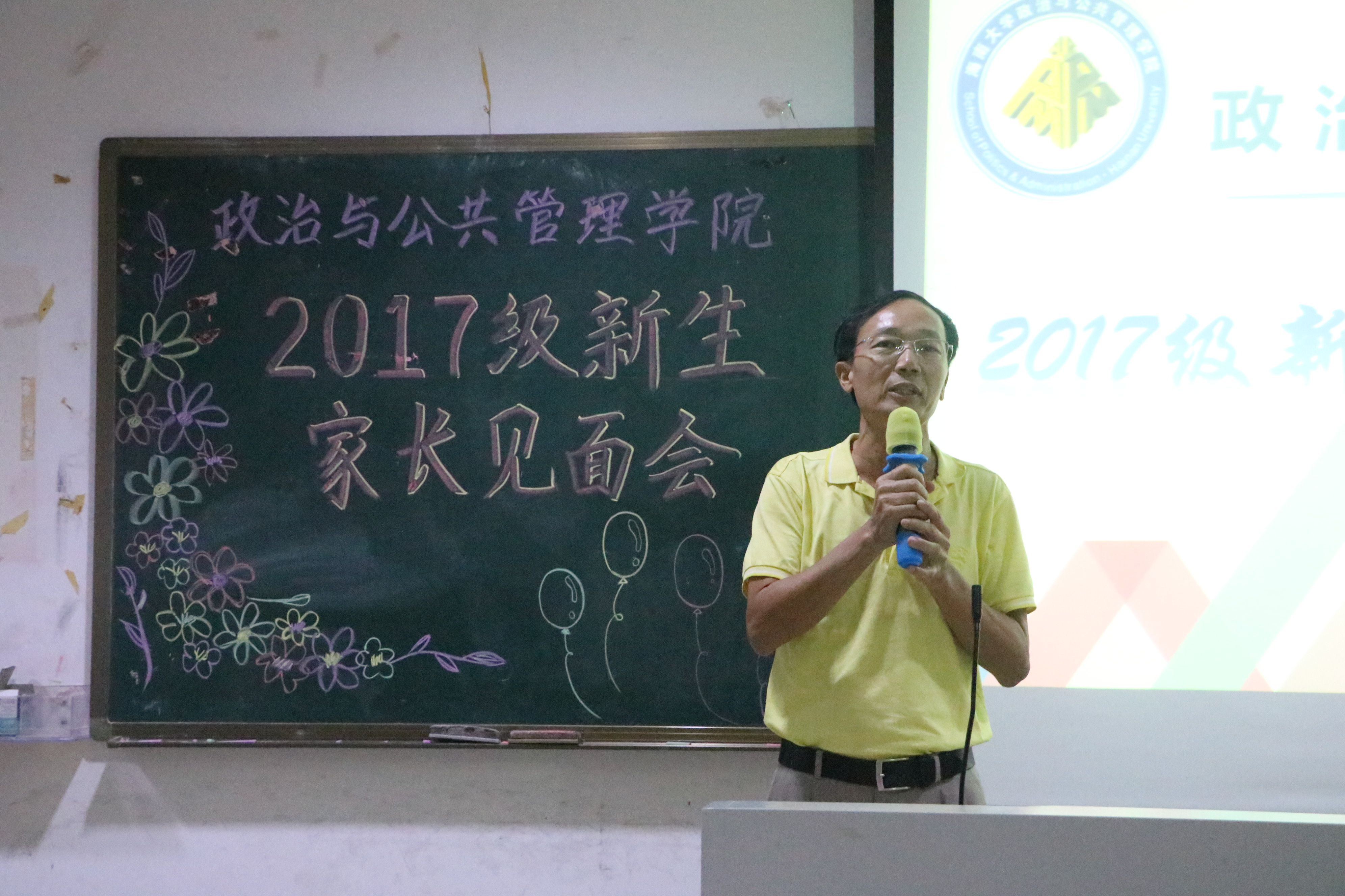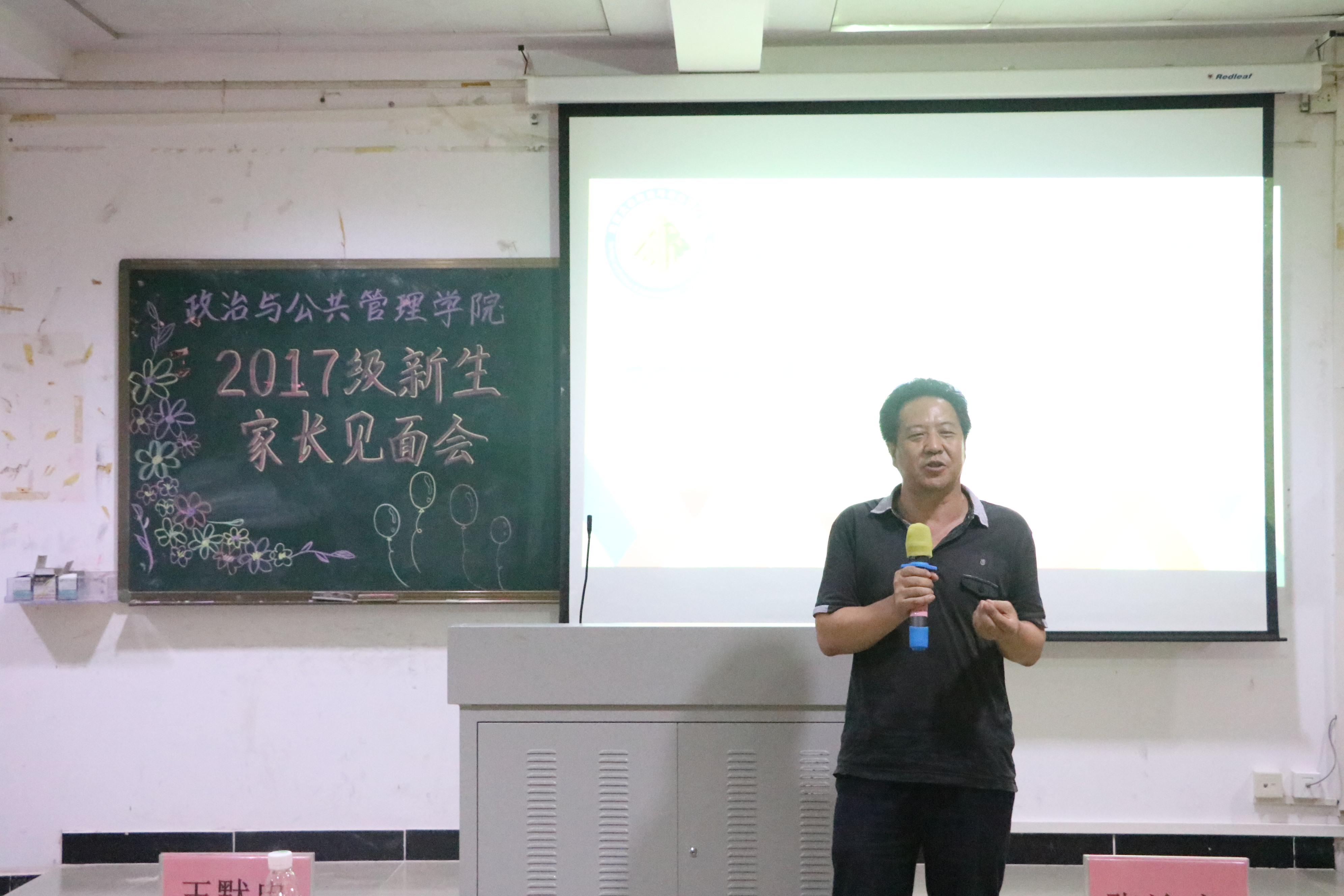 为了让新生家长对学院的了解,给新生家长答疑解惑,引导新生更快适应大学生活。9月10日上午,政治与公共管理学院在城西校区教学楼举行了2017级新生家长见面会。院长张治库、党委书记王默忠、副院长江红义、李宜钊、周伟,教研办主任黄远飞、学工办主任赵士刚、团委书记惠靖淼、辅导员左世宝以及100余位新生家长参加了此次会议。会议由王默忠书记主持。