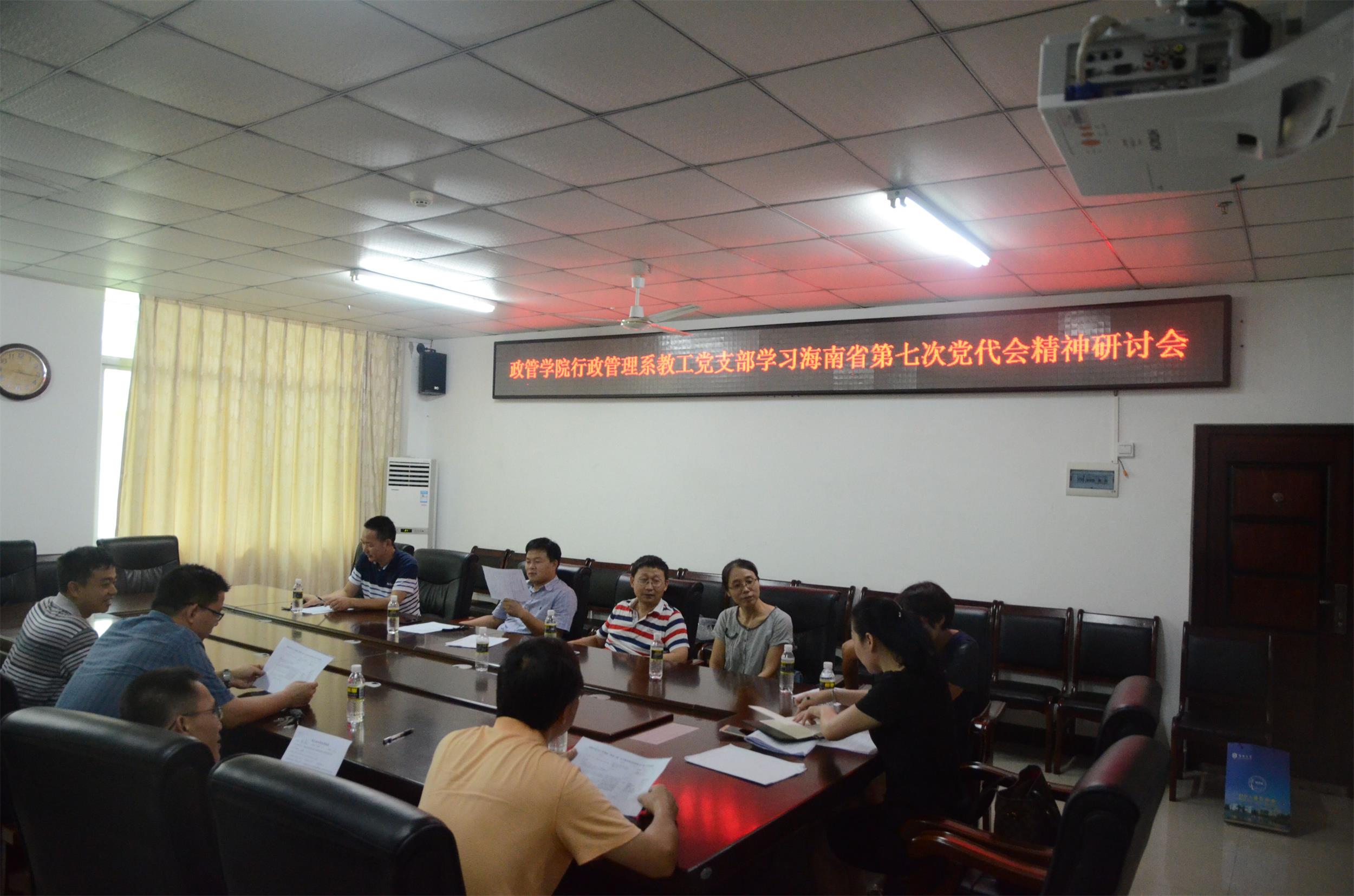 6月15日下午,政治与公共管理学院行政管理系教工党支部在社科楼A栋213会议室召开了系全体党员会议,会议以习近平总书记2013年在海南视察工作时的重要讲话为指导,集中深入学习了省委书记刘赐贵在七届省委常委会第6次会议上的讲话精神。在传达学校党委会精神的基础上,与会人员研究和探讨了关于如何加强基层党组织建设以及如何丰富基层党组织活动等问题。