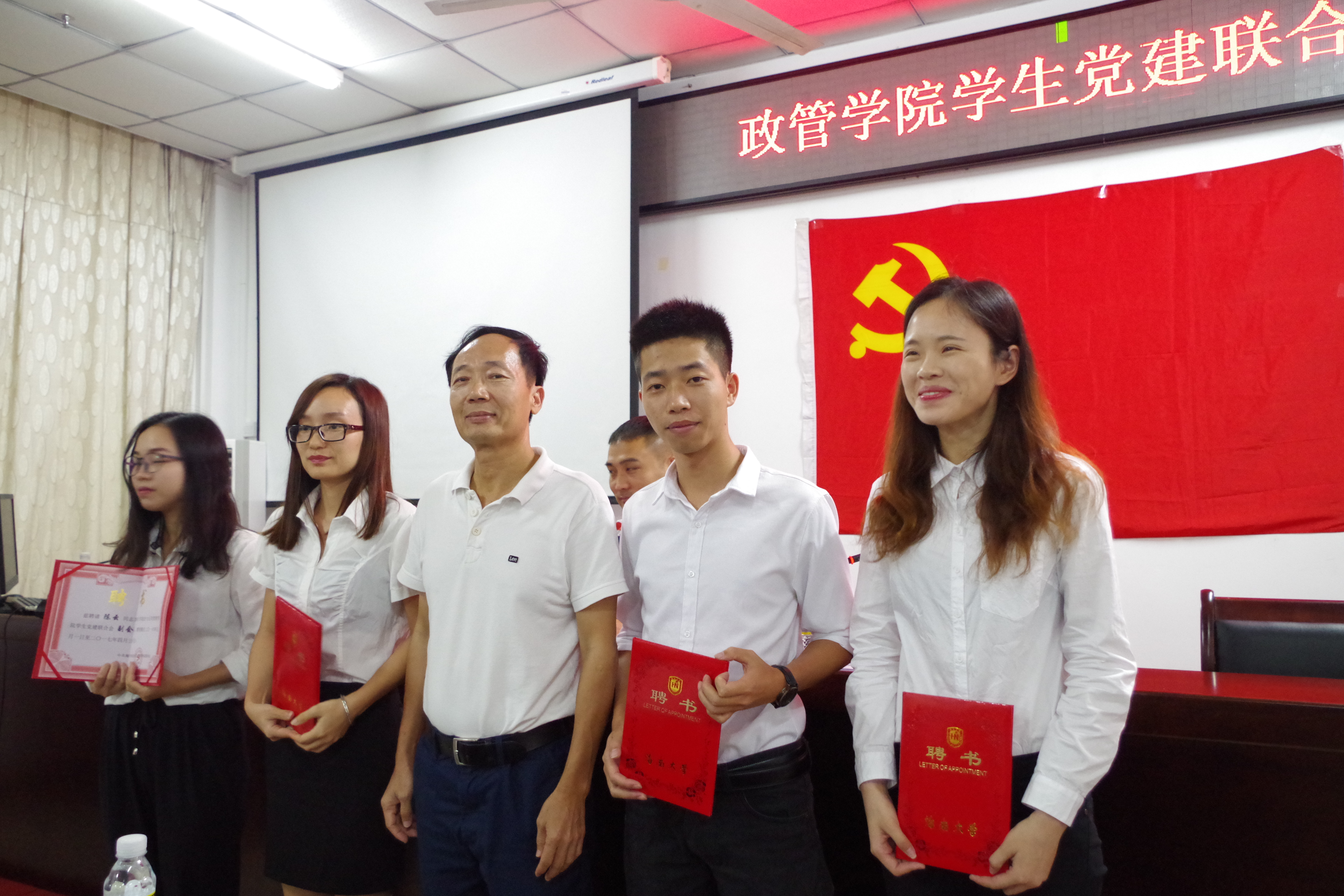 最后,王默忠书记为第一届政管学院学生党建联合会委员会委员颁发聘书。