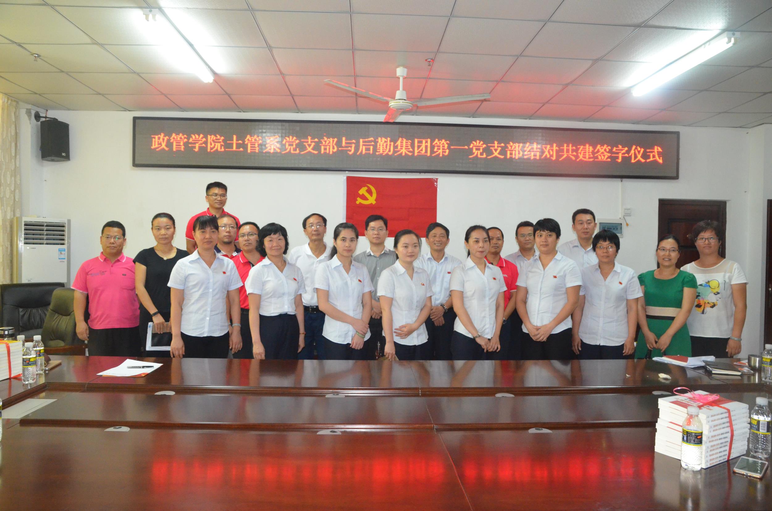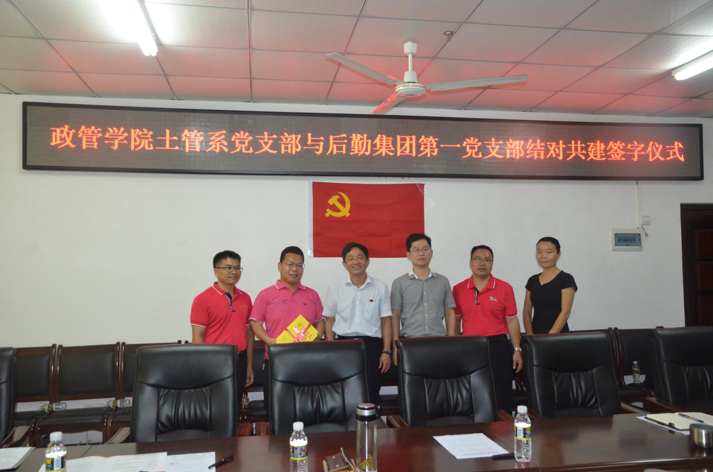 为持续推进“两学一做”学习教育,切实加强和创新基层服务型党组织建设,搭建党员交流平台,丰富党支部组织生活形式,创新和激发基层党组织活力,形成“资源共享、党建共做、优势互补、协调发展”的基层党建工作新格局,不断提高基层党组织的凝聚力、战斗力和创造力。2017年4月21日上午,中共政治与公共管理学院土地资源管理系党支部与中共后勤集团第一党支部签订基层党组织结对共建协议。海南大学组织部组织科陈青科长、政治与公共管理学院党委王默忠书记、后勤集团党委李海清书记、后勤集团党委徐小华委员、土管系及后勤集团第一党支部全体党员等出席了签字仪式,会议由政管学院党务工作联系人唐名胜老师主持。