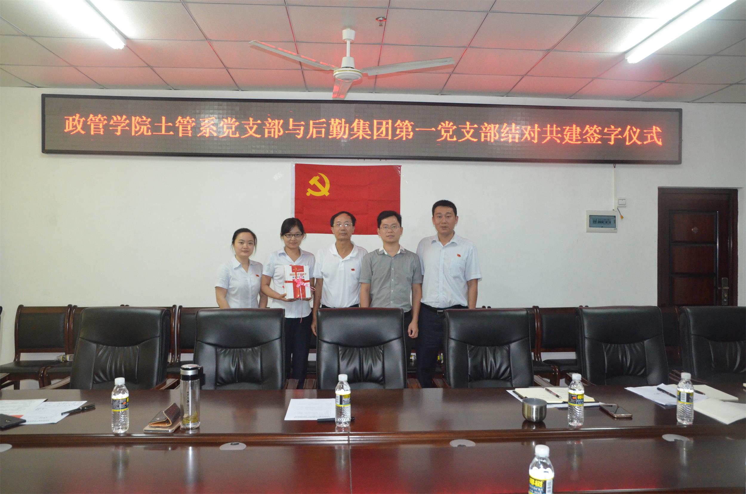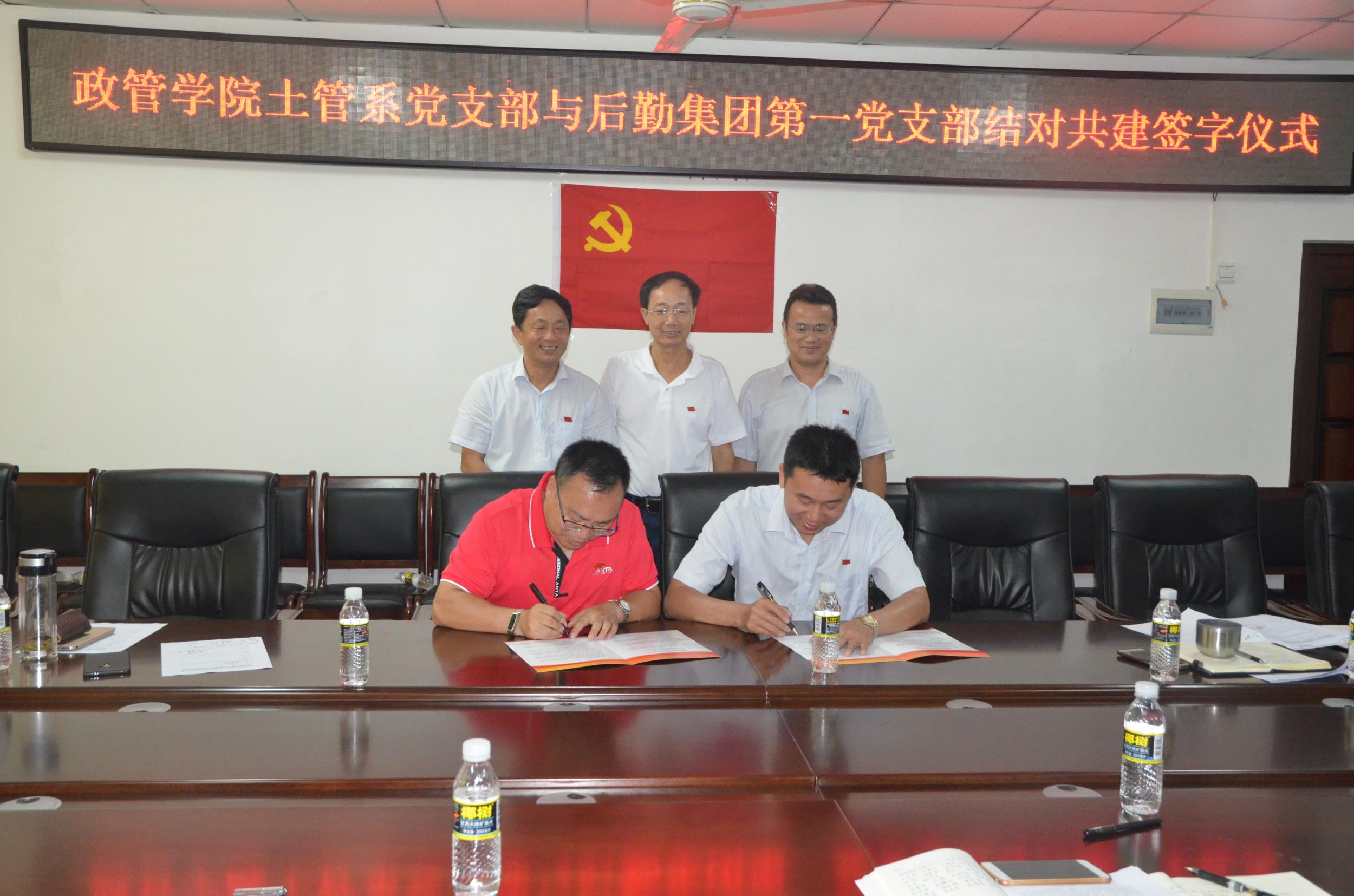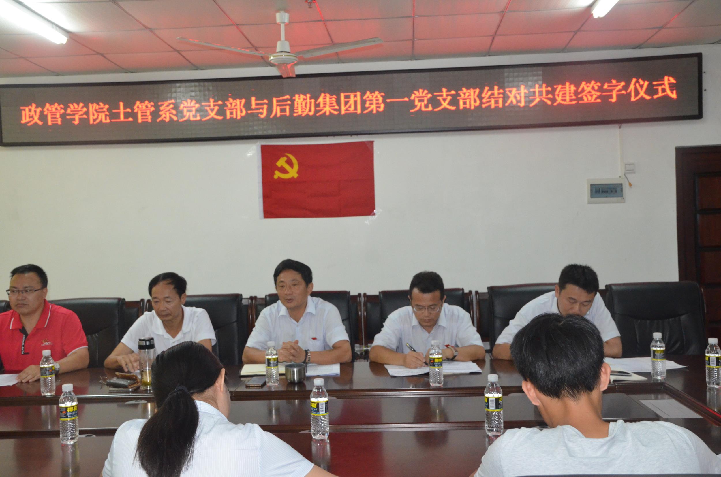 政管学院土管系党支部书记栾乔林,后勤集团第一党支部书记符万祺分别介绍了各自支部的基本情况,并代表各自党支部签订了结对共建活动协议书。双方的党委书记也分别给两个支部赠送了《平易近人——习近平语言的力量》和《撸起袖子加油干党员干部读本》书籍。