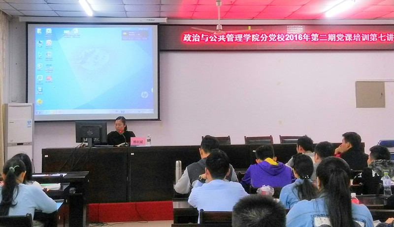 2016年12月10日上午8时30分,政治与公共管理学院分党校2016年第二期党课培训第七讲在社科楼A111开讲,我院党委邢红斌副书记在课堂上与四十多位发展对象进行了交流探讨,本次党课由我院学生党建联合会会长温阳权主持。