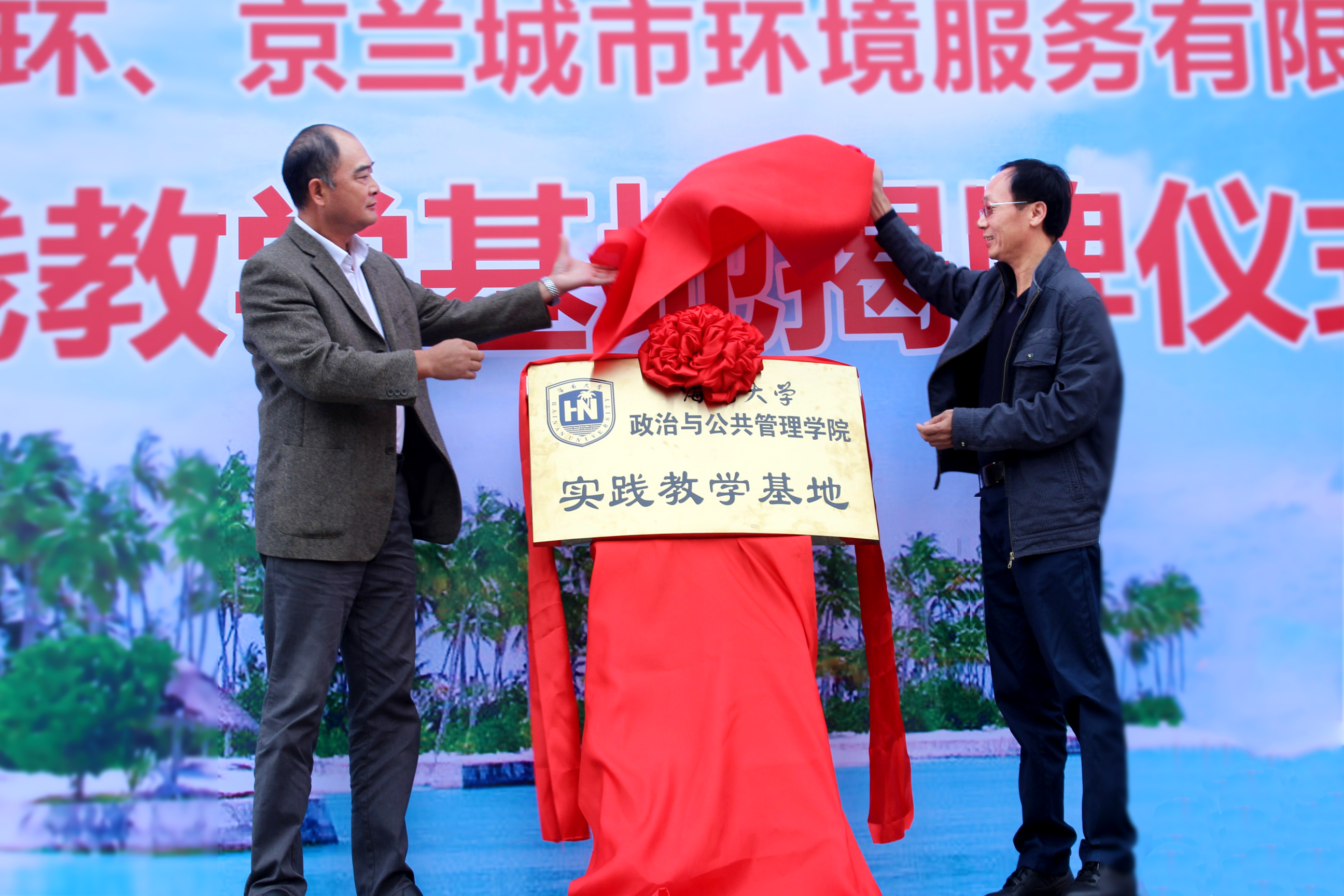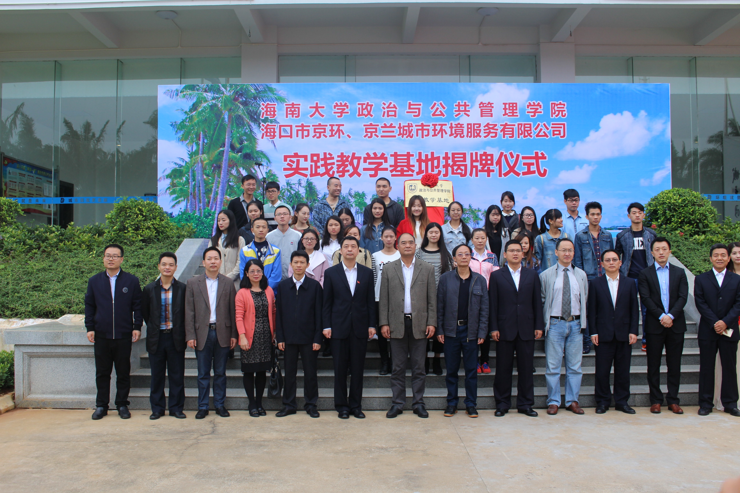 11月29日,政治与公共管理学院同海口京环、京兰城市环境服务有限公司(以下简称海口京环、京兰公司)在海口综合保税区举行共建实践教学基地揭牌仪式。海口京环、京兰公司隶属大型国企北京环卫集团旗下的北京环境有限公司海南分公司(以下简称京海环境公司),是从事环卫运营、技术研发的PPP公司,共有员工5000人,是海南实力最强的环境服务企业。