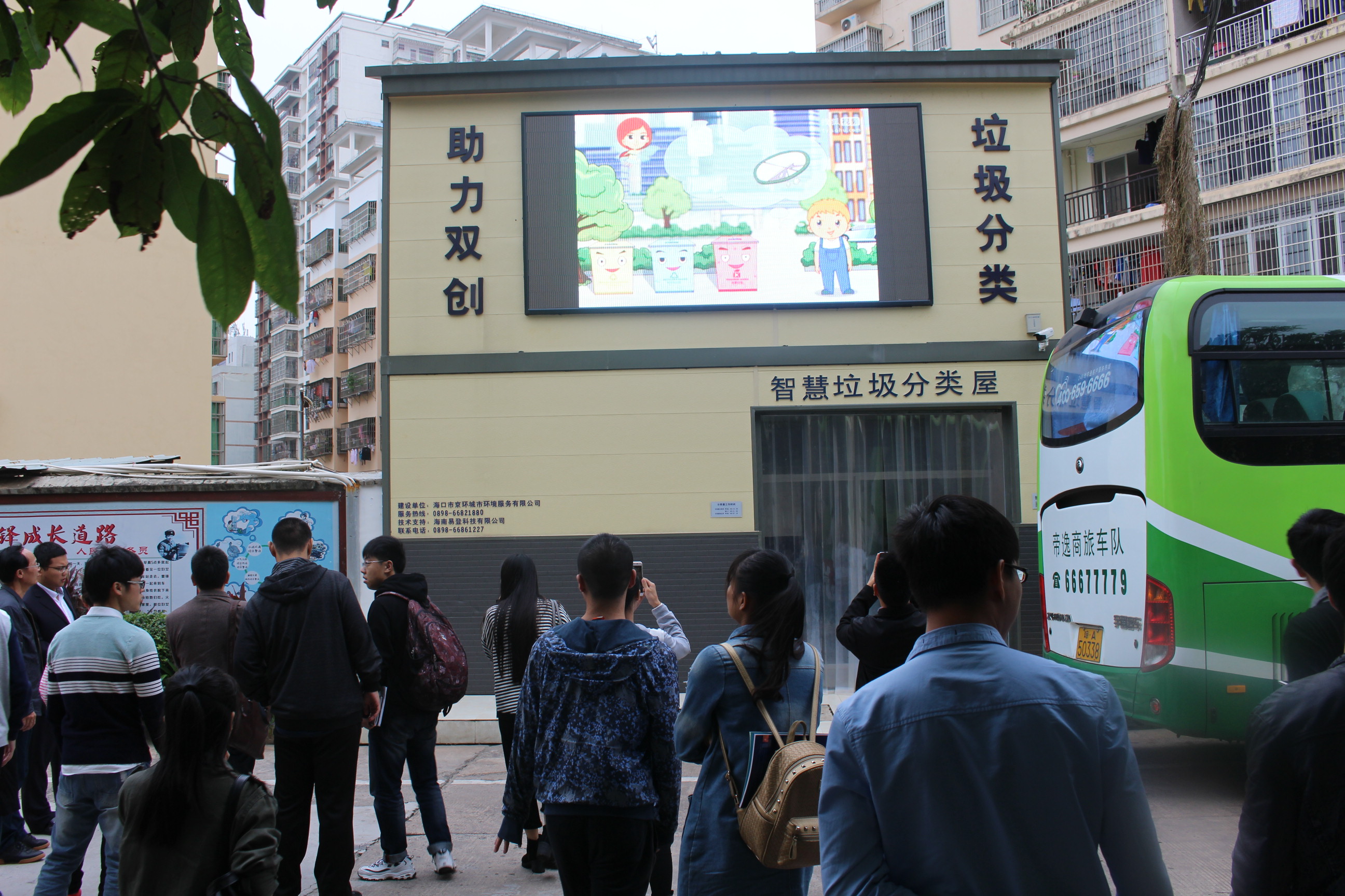 下午1点,我院师生在公司党委王春庆书记带领下欣赏了该公司一线环卫工的快闪舞蹈并参观了公司位于海口的第一个垃圾分类屋,大家纷纷表示建立垃圾分类屋的做法有利于民众环保意识的加强。参观完成后,我院王默忠书记带队返回学校。