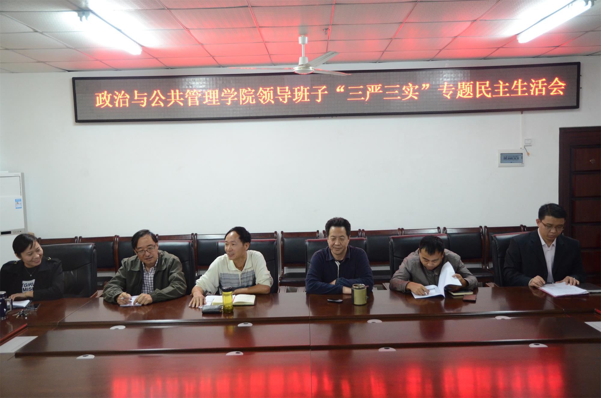 2015年12月29日下午,政治与公共管理学院领导班子召开了“三严三实”专题民主生活会。学院党委书记王默忠同志主持会议。