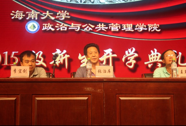 伴随着庄严的国歌声,开学典礼正式开始。张治库院长代表学院致辞。张院长首先向在场的新生表示热烈的欢迎,并简单的介绍了我院的发展历程及各专业学科的基本情况。张院长强调大学是一个培养独立人格和健全心理的地方,同学们应该对自己的大学有一个合理的规划,处理好与老师、同学之间的关系,做一个大写的人。张院长讲话引发了现场学生的热烈掌声,政管人的心,在这掌声中联系的更加紧密。随后,邢红斌副书记宣读了学院聘任文件,院长、书记为新生班主任和校外职业导师颁发了聘书。学院教师代表、职业导师代表、老生代表和新生代表分别作了发言,从不同的方面阐释了对大学的看法。最后,王默忠书记发表讲话:相遇在政管是一种缘分,希望同学们能不念过往,不惧将来,在政管共同成长!