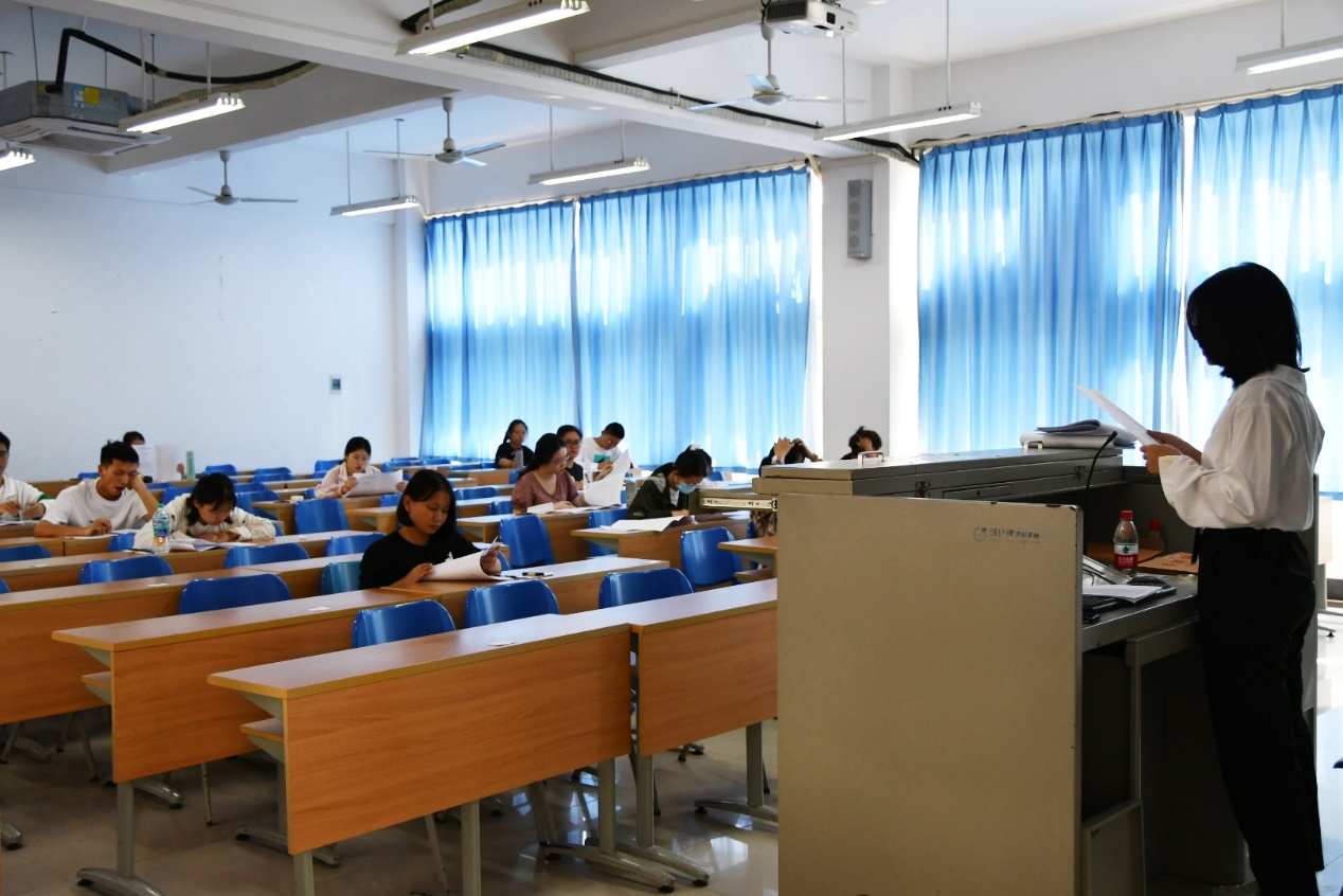 本次笔试共分为行政能力测试和申论考试两部分。行测考试开考前,工作人员悉心引导考生有序签到入座、核查证件并督促考生物品存放。随后,工作人员宣读考试规则、严肃考风考纪并分发试卷。考生们在开考后迅速进入状态,答题全神贯注,现场秩序井然。我院黄燕梅副教授莅临现场巡查,向工作人员询问考试相关事宜,并向考生强调考场纪律。