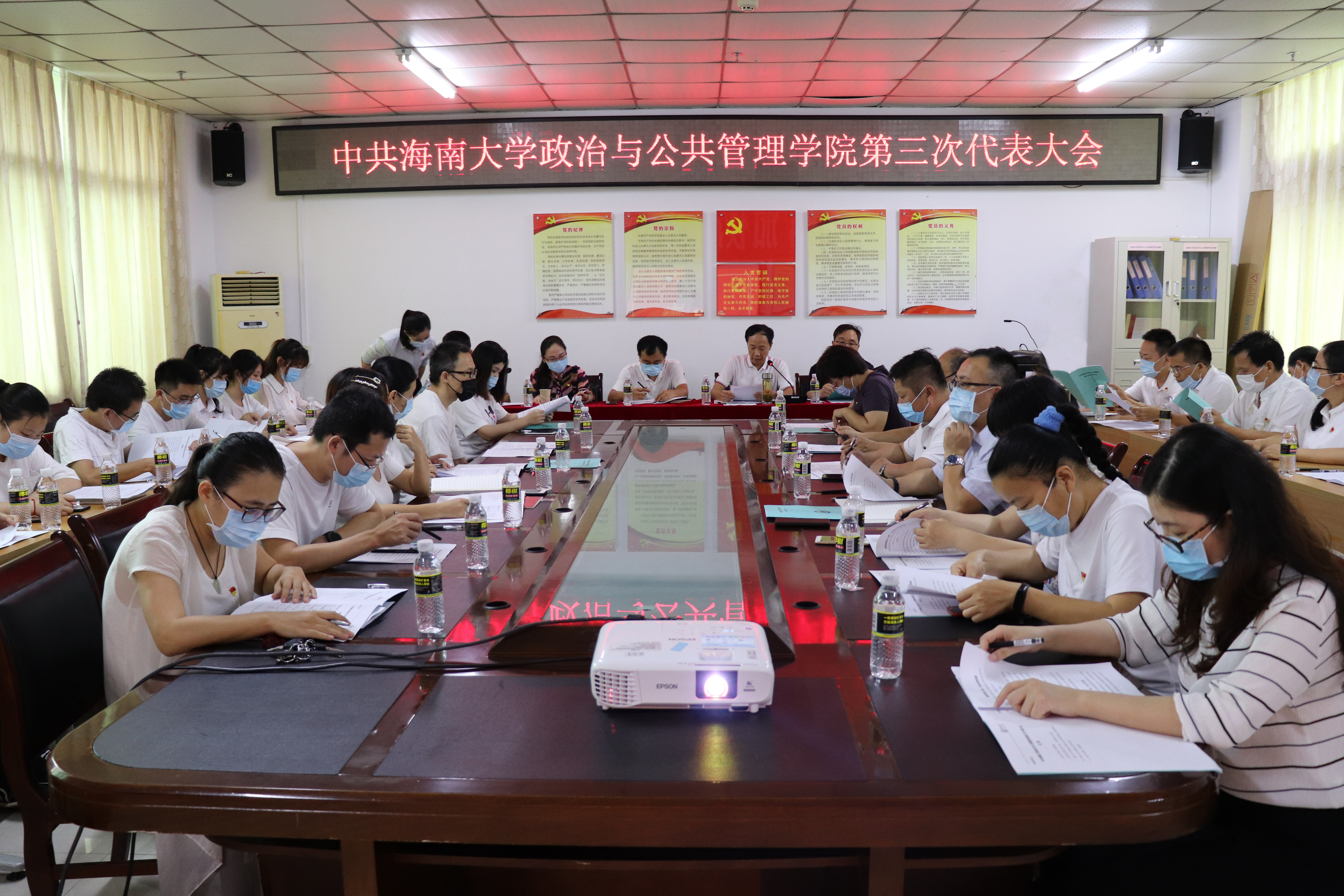 6月16号下午,中共海南大学政治与公共管理学院第三次代表大会在学院216会议室举行。全体教工党员及学生党员代表共计45人参加了大会。会议由上届党委委员、副院长刘德浩同志主持。