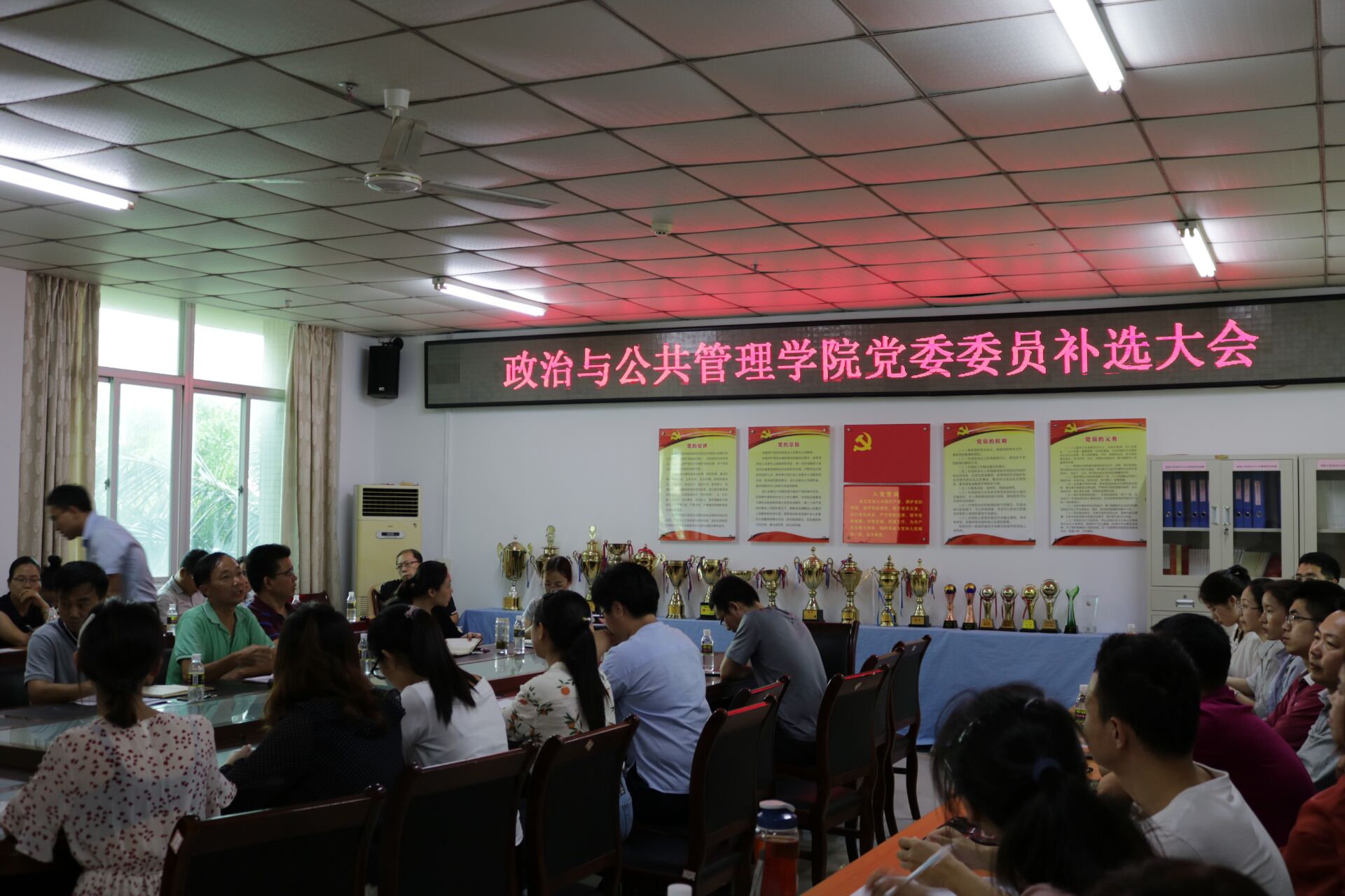 4月9日下午,政治与公共管理学院在社科楼A216召开党委委员补选大会。会议由王默忠书记主持,院全体正式党员参与会议。