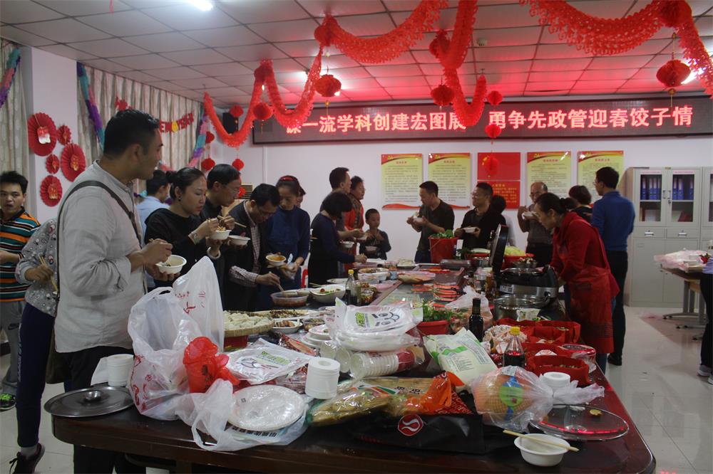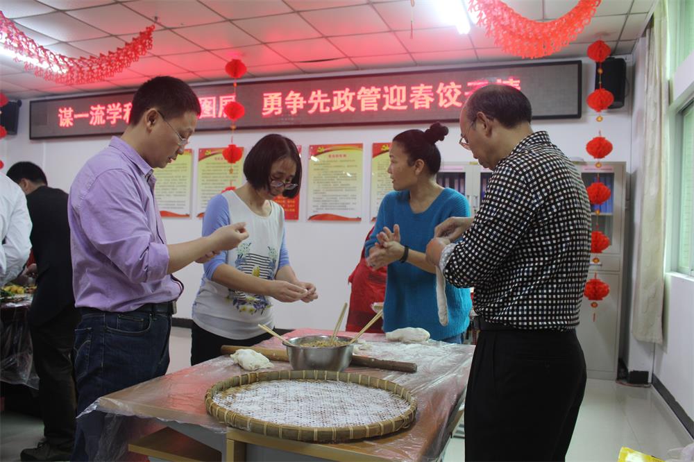旧岁已去,新春将至。年终岁首,为凝心聚力、加强学院教职工之间的联系,营造友爱向上的氛围,1月11日下午四点,政管学院工会组织学院教职工进行主题为“创一流学科建设大发展勇争先政管迎春饺子情”的趣味包饺子活动。