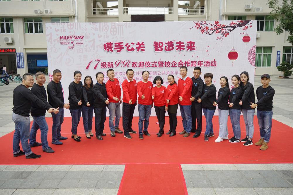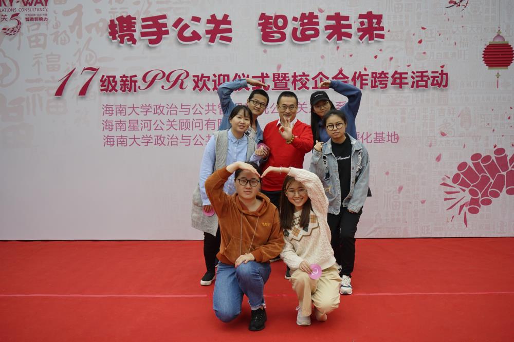 校企联合谋发展,合作双赢谱新篇!12月29日上午,由海南大学政治与公共管理学院与海南星河公关顾问有限公司联合承办的“携手公关 智造未来”——校企合作跨年活动,在海南大学成功举办!海南大学政治与公共管理学院党委书记王默忠、海南大学公关系系主任陈小桃、海南大学公关系专业老师、海南星河公关顾问公司团队与2017级公关系学生出席本次活动。