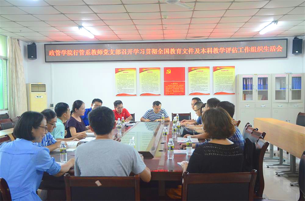 2018年10月24日下午,政治与公共管理学院行政管理系教师党支部在A216会议室召开了学习贯彻全国教育文件及本科教学工作审核预评估整改工作组织生活会。会议由党支部书记徐艳晴同志主持。