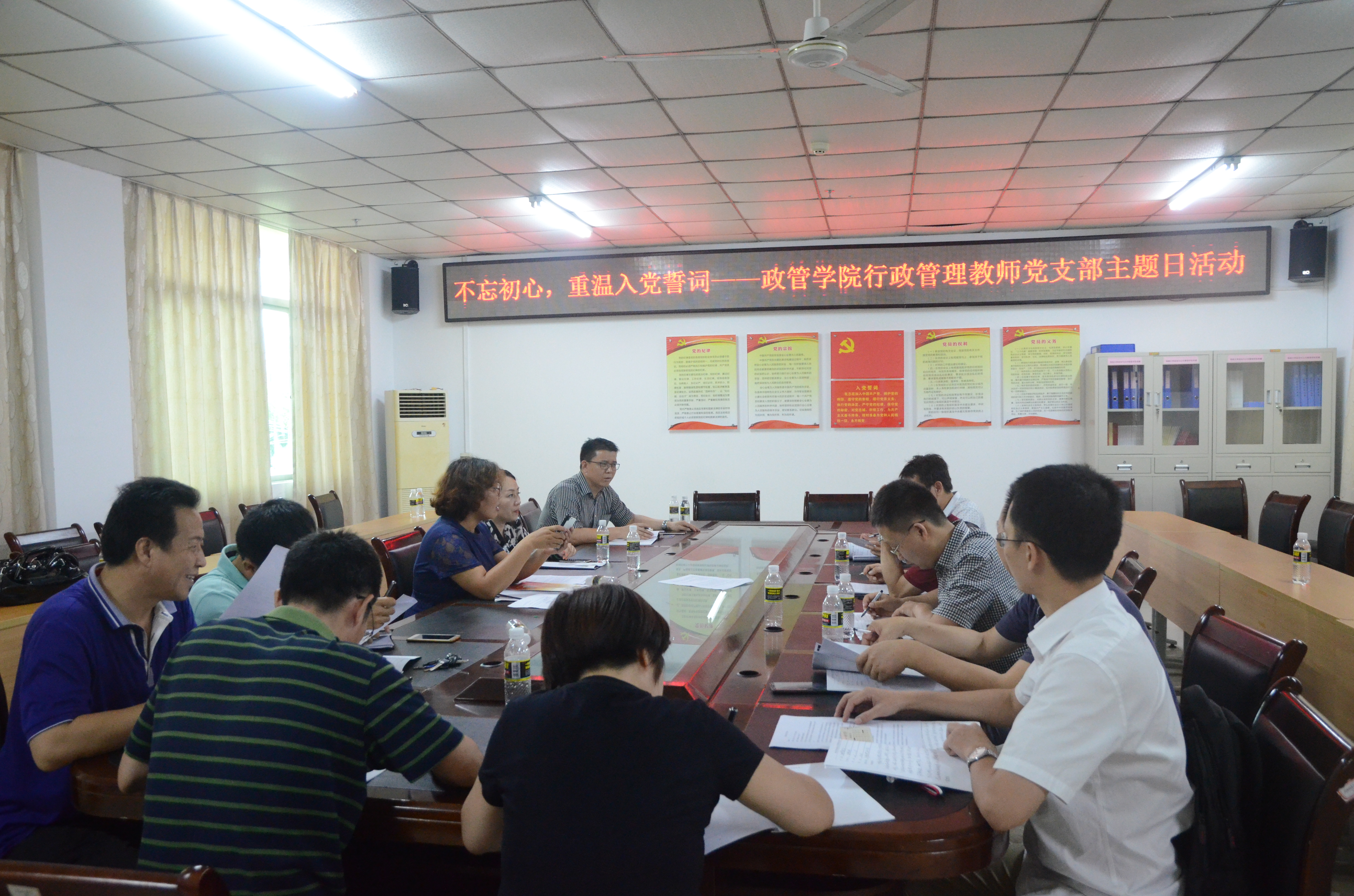 为庆祝中国共产党建党97周年。6月26日下午,政管学院行政管理系教师党支部在社科楼A216会议室开展了“不忘初心,重温入党誓词”为主题的党日活动,全体党员参加了活动。与会党员通过重温入党誓词,再一次深刻体会到“不忘初心、牢记使命”的重要性,作为一名共产党员,就必须时刻修正自己的入党目的和动机,不断坚定为社会主义和共产主义事业奋斗的信念,不断增强为人民服务的决心,这样才能与时俱进,无愧以心。