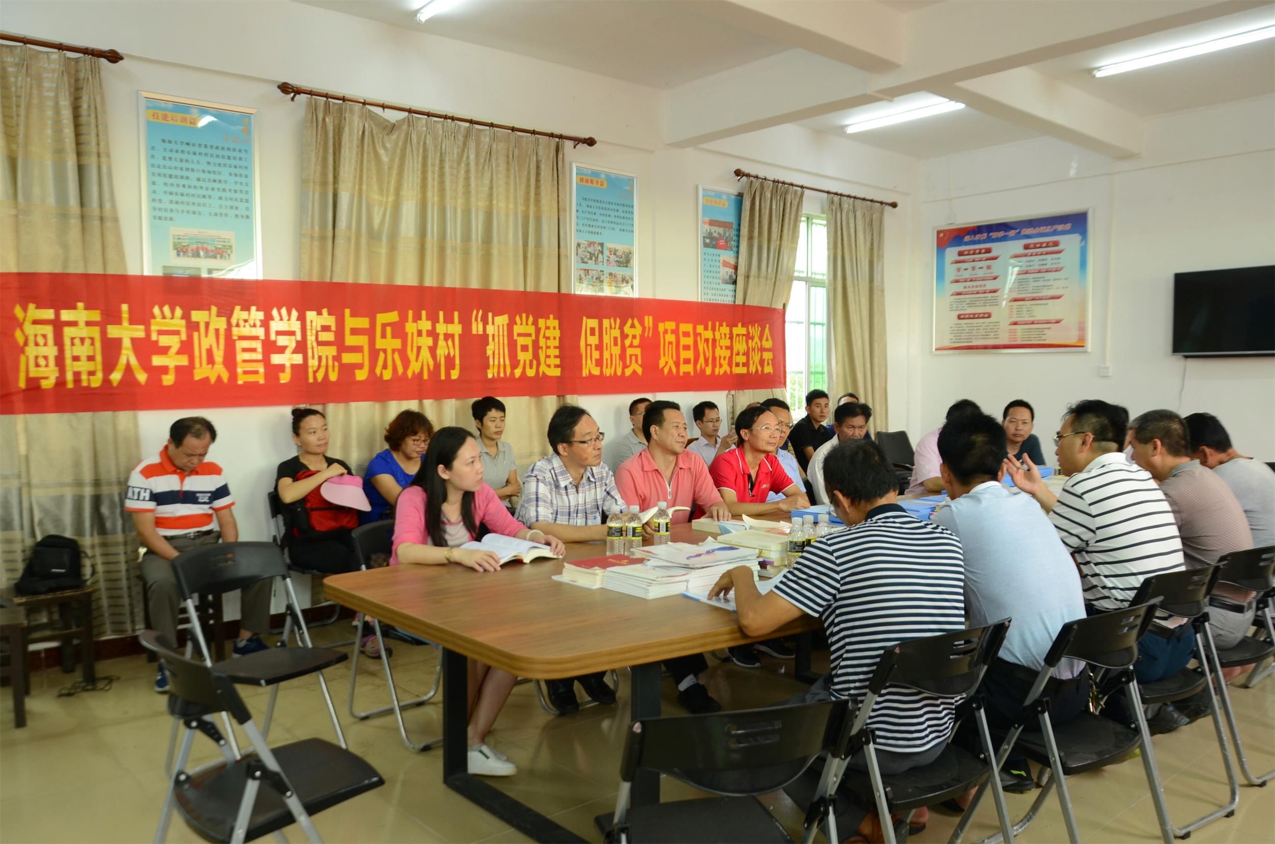 6月2日,我院赴学校扶贫点——东方市大田镇乐妹村,与村第二党小组就事先签订的帮扶项目——社会治理和土地资源测绘开展对接活动。参加项目对接座谈会的有东方市人大常委会副主任、我校校友曾玉雄,学校派出的驻村第一书记王联春,还有来自大田镇驻村干部、村第二党小组组长陈月良等党员代表。座谈会上,曾玉雄副主任、王联春书记首先代表乐妹村干部群众感谢海南大学长期以来对乐妹村的帮扶,感谢政管学院领导及教师对乐妹村的牵挂,对学院一行人的到来表示热烈欢迎。曾副主任指出,社会治理和土地测绘这两个项目的对接很有意义,特别是社会治理对于东方市来说非常重要,希望今后能够扩大和提升到市级层面加强与政管学院的合作。接着王联春书记和村干部纷纷就当前党建发展,脱贫攻坚,村容村貌,环境改善,社会治理及土地资源规划管理方面存在的问题进行了积极交流。学院王默忠书记对乐妹村党员干部以党建抓好工作、发挥脱贫攻坚带头作用表示赞赏,表示政管学院将结合学院资源优势,在社会治理、土地资源测绘、人员培训等相关方面给予积极支持,也期望乐妹村干部抽时间到政管学院多交流,彼此加强联系,共同助力脱贫并避返贫。座谈会后,学院教师党员相继向乐妹村发放了学院自编的“海南自然与历史文化知识小册子”,与乐妹村党员合影拍照,参观了乐妹村扶贫成果并爱心购买了花卉等扶贫产品。