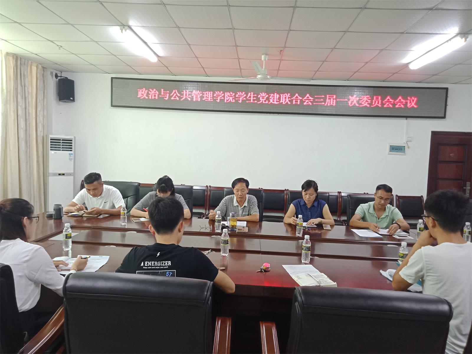 5月18日上午,政管学院学生党建联合会三届一次委员会会议在社科楼A栋213会议室召开,学院党委书记王默忠、党委副书记邢红斌、学工办主任赵士刚、团委书记韦诗林、辅导员左世宝老师及第三届学生党建联合会委员参加了会议。会议由左世宝主持。