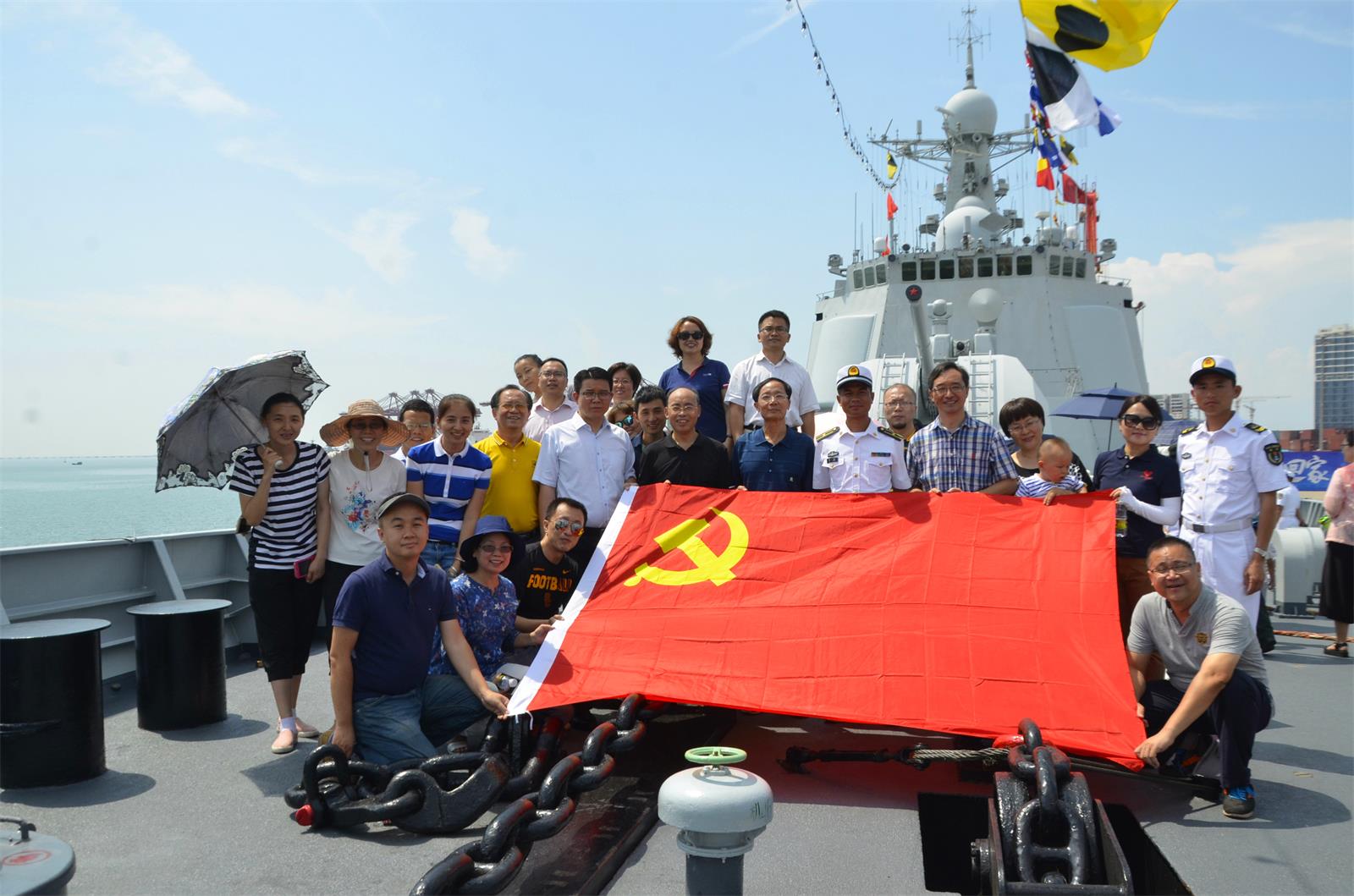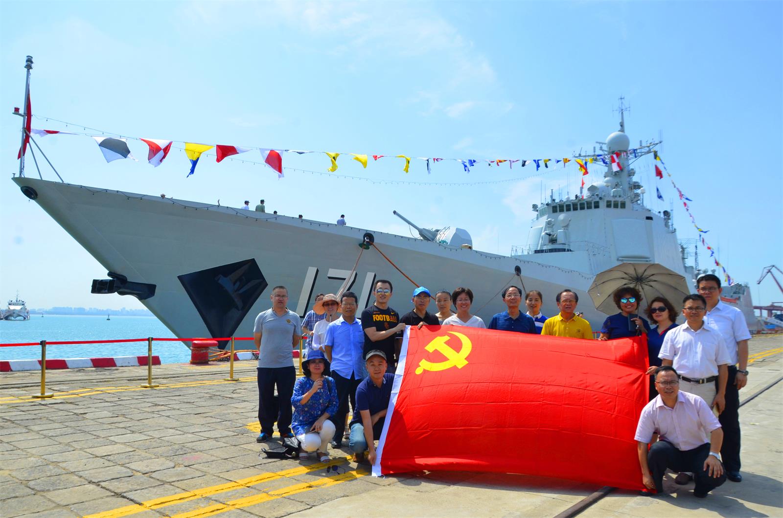 5月17日下午,在学院党委王默忠书记的带领下,政管学院党员教师一行27人前往海口秀英港参观守护祖国十三载首次“回家”的中国海军171海口号驱逐舰。在仔细浏览了中国海军发展与海口舰的图片资料之后,大家满怀激动地登上了雄姿威武的海口舰。跟随海军战士的引导,大家在舰上参观了一周,认真地倾听战士对海口舰作战能力的介绍,在整个参观过程中,大家纷纷为中国海军挺进深蓝、走向世界点赞,为我国拥有强大的军事实力感到骄傲和自豪。