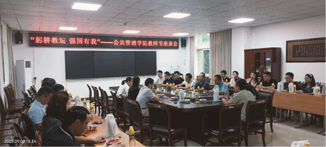 2023年9月8日下午,“躬耕教坛,强国有我”——公共管理学院教师节座谈会在社科楼A219成功举办。公共管理学院党政领导班子成员和学院全体教师参加了座谈会活动。座谈会由党委书记黄丽芹主持。