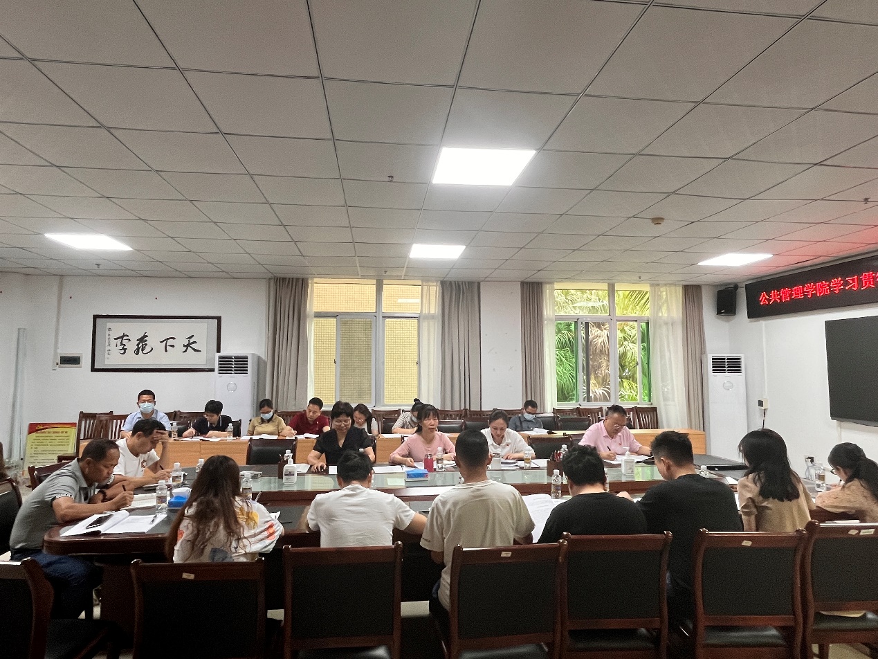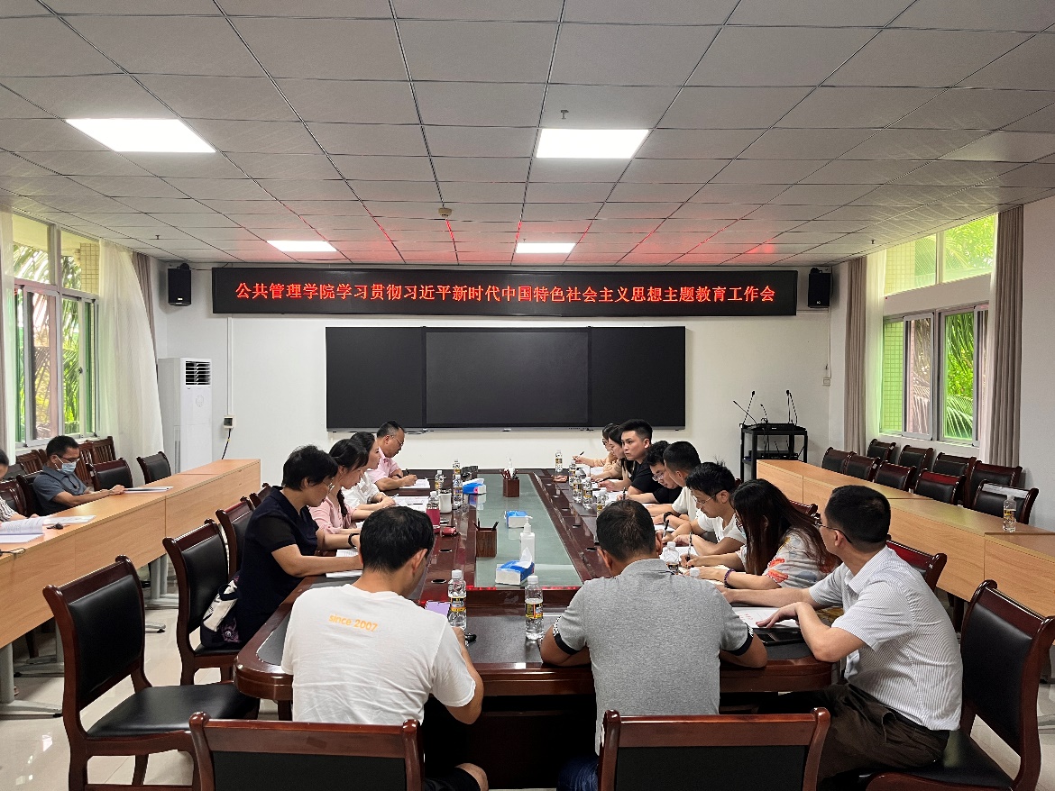 4月20日下午,公共管理学院在社科楼A219召开学习贯彻习近平新时代中国特色社会主义思想主题教育工作会议,会议由党委书记黄丽芹主持,党政领导班子、党员教师参加会议。