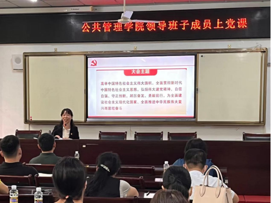 10月25日下午,公共管理学院在社科楼A111召开党员大会,学习传达党的二十大精神。会议由党委书记黄丽芹主持,党政领导班子、全体党员教师参加会议。