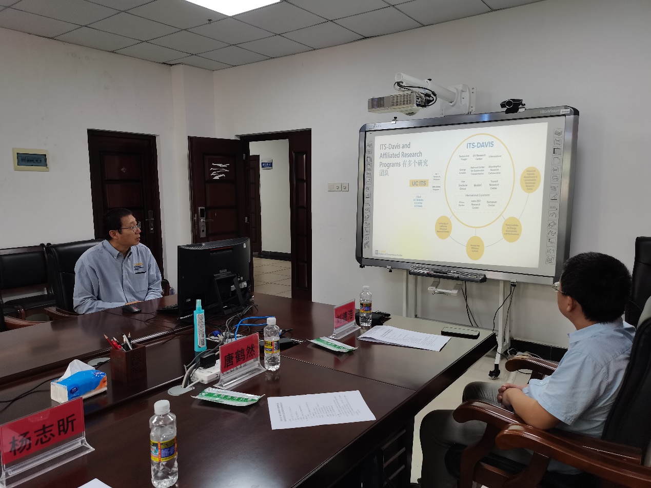 叶光亮副校长代表学校对王云石教授来访表示热烈欢迎,并对加州大学戴维斯分校与我校成立能源和交通发展研究中心表示热烈祝贺。叶校长指出,海南自贸港建设正在稳步推进,开展能源和交通领域相关研究,对服务国家生态文明试验区建设具有重要价值。期待双方强强联合,在能源和交通领域取得高质量研究成果,为海南自贸港建设和“双碳”目标实现贡献力量。