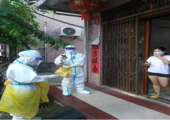 他们于8月22日奔赴万宁支援抗疫工作,他们参与了万宁郊区的两个高风险区的志愿者服务。每天凌晨5点多起床、6点钟出门,上门核酸采集、样本采样转运、信息录入等。由于高温炎热,老师们每次脱下防护服就像从水里捞出来一样。连续多日高强度的工作,有的老师身体出现不适,但他们依然咬牙坚持,抓住休息时间及时调整,第二天又继续投入到紧张的工作中。