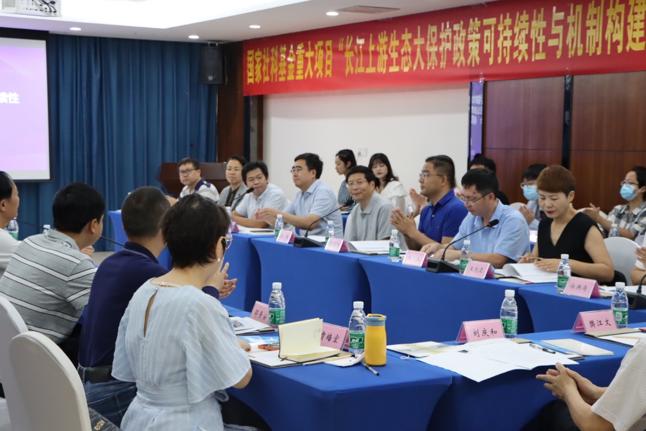 随后,与会专家从各自专业领域分别对项目提出了指导性意见和建议。最后,王桥院士代表专家组提出了重要的指导性建议,强调研究工作应进一步聚焦长江上游生态大保护背景下的政策体系,高度关注生态大保护政策可持续性机制的构建,加强项目研究的整体性、各子课题之间的协同性和时间协调性。